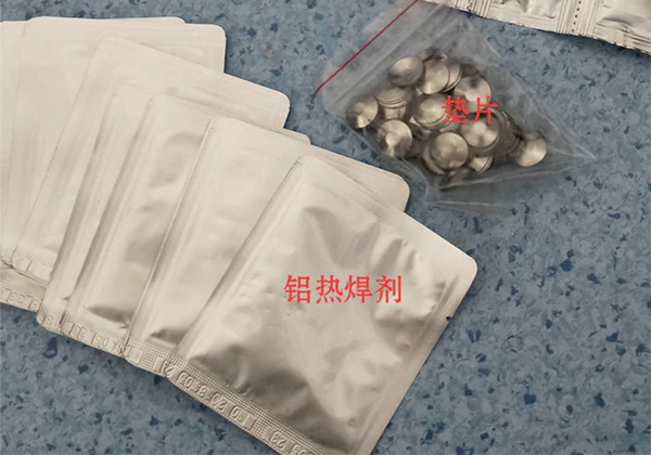 (3)然后依次將鋁熱焊劑、點(diǎn)火劑放置于銅片上部;